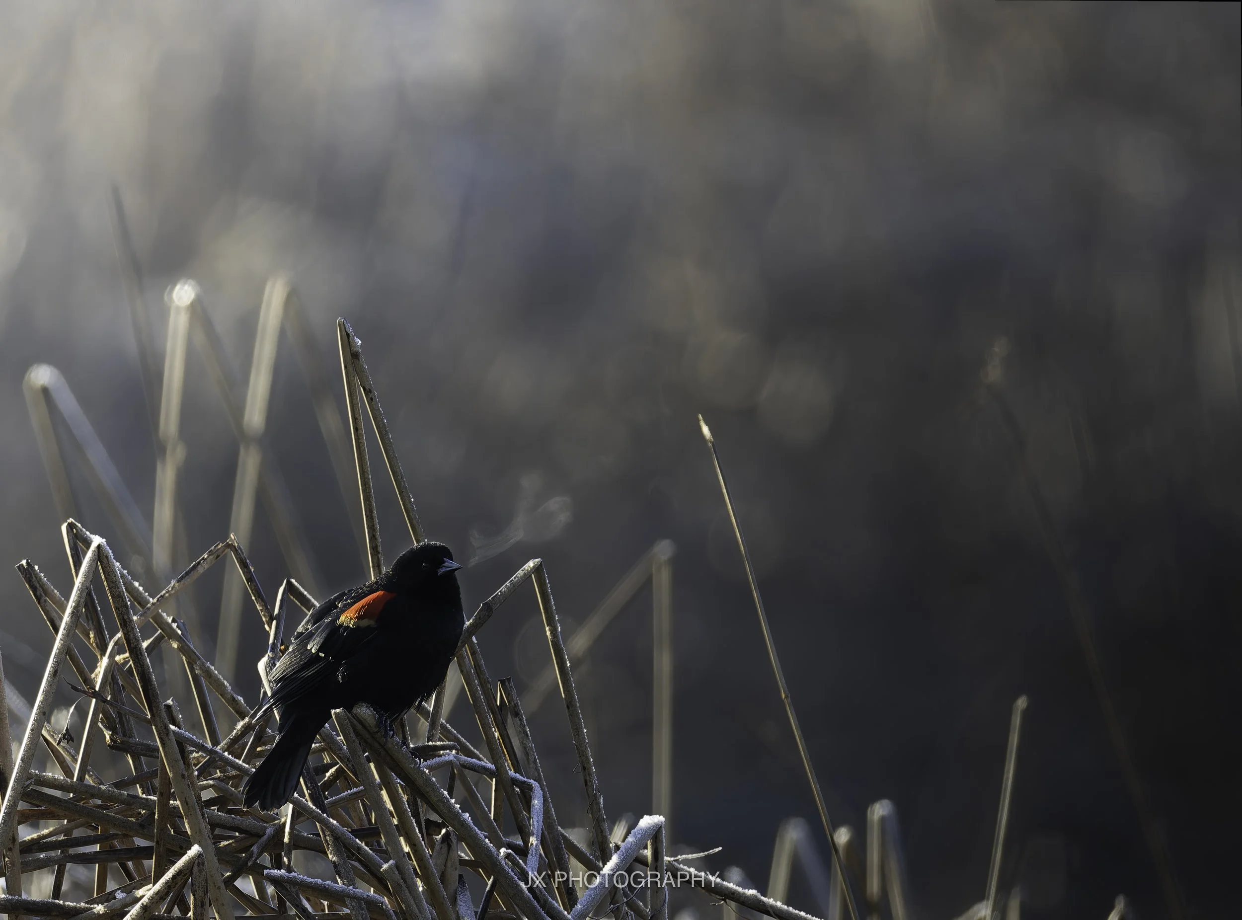 Bright sunny morning, little to no fog (finally!) and -1 degrees C. The majority of Iona beach was covered in a crystal veil of ice and dew. Not much wildlife except for a few Red-winged Blackbirds singing in the morning sun.